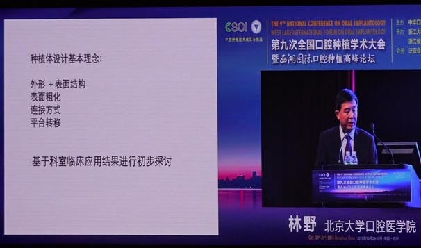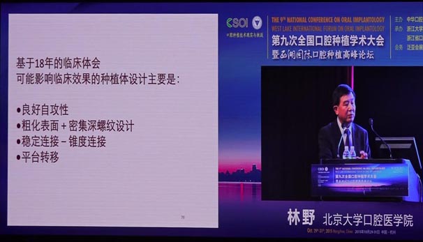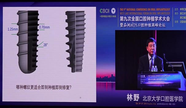 會(huì)議期間國(guó)內(nèi)知名口腔專家針對(duì)當(dāng)前口腔種植領(lǐng)域熱點(diǎn)進(jìn)行了精彩的學(xué)術(shù)演講。其中北京大學(xué)口腔醫(yī)學(xué)院林野教授的演講主題是種植體設(shè)計(jì)及臨床意義。