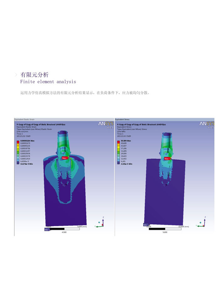 有限元分析結(jié)果:運(yùn)用力學(xué)仿真模擬方法的有限元分析結(jié)果顯示,在負(fù)荷條件下,應(yīng)力被均勻分散。